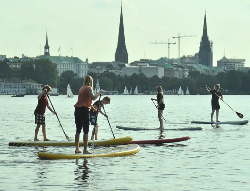 Auf dem Board übers Wasser zu gleiten ist ein großartiges, unvergleichliches Gefühl. Für die ganze Familie, von Groß bis Klein, jung und alt.