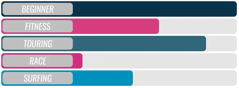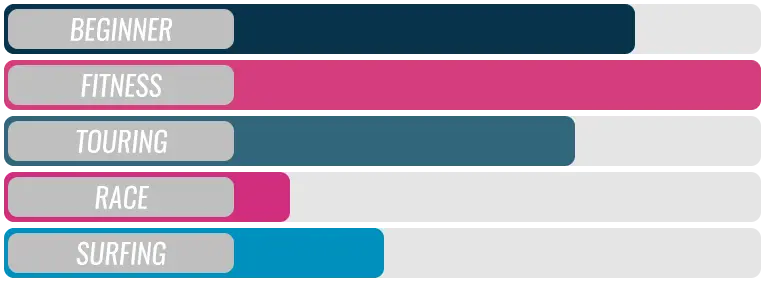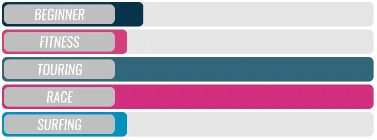 Für den Racing- oder Surfing-Einsatz reduziert sich die Länge um ca. 2 bis 4 cm gegenüber dem Touring Bereich!