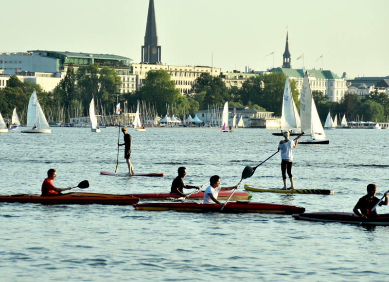 - Wenn zwei Paddler aufeinander zufahren, gilt die gleiche Regel wie im Kajak- und Kanusport: von beiden wird nach rechts ausgewichen.